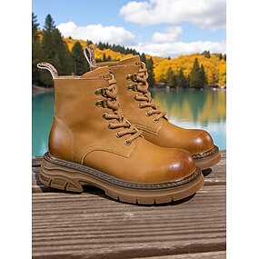stivaletti classici con lacci da donna: stivali da lavoro resistenti in stile combattimento per outfit casual autunnali, invernali e all'aperto