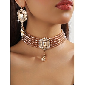 set di collane con perline color champagne da donna per matrimonio o festa serale