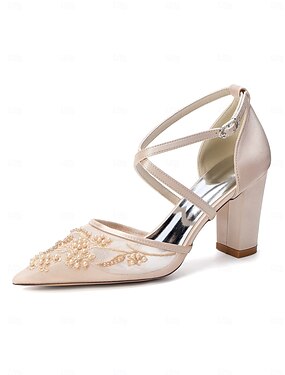 Scarpe da sposa eleganti con punta affilata, con cinturino alla caviglia decorato con perle color avorio, per matrimoni in città moderne