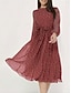 Per donna Abito Midi Abito a trapezio Casual Quotidiano Vestibilità regolare A Pois Manica Lunga Girocollo Nero Rosso Blu marino Grigio Primavera Autunno