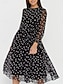 Per donna Abito maxi Abito a trapezio Casual Quotidiano Vestibilità regolare A Pois Manica Lunga Collo quadrato Nero Primavera Autunno