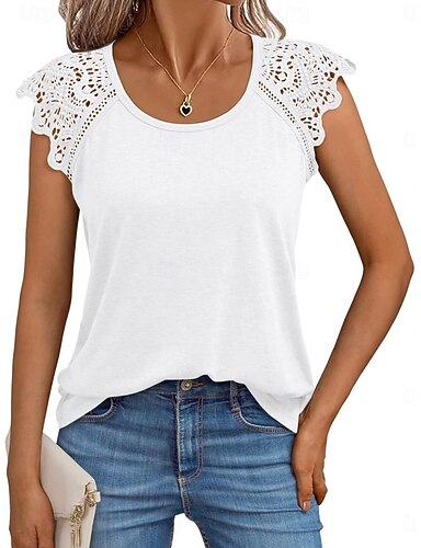 Per donna Maglietta Maglietta in pizzo Semplice Moda Elegante Classico Manica Corta Girocollo Top Regolari Quotidiano Uscire Weekend Blu Estate Primavera