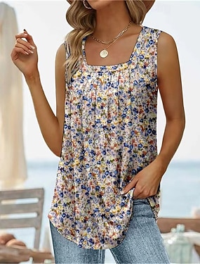 Per donna Camicia Maglietta Patchwork Stampato Tinta unica Floreale Grafico Elegante Classico Moderno Senza Maniche Collo a U Top Regolari Quotidiano Uscire Weekend Nero Bianco Rosso Azzurro cielo