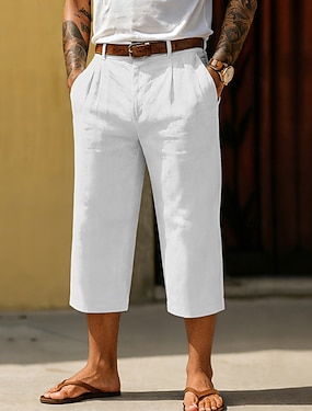 Per uomo Pantaloncini Pantaloncini di lino Pantaloncini estivi Pantaloncini da spiaggia Pantaloni modello Capri Tasche A cordoncino Vita elastica Liscio Comfort Traspirante Polpaccio Esterno Interni