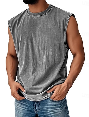 Per uomo Canotta Canottiera Camicia 100% cotone lavaggio acido Senza Maniche Girocollo Estate Semplice Moda Classico Casual Tinto in capo Puro Casuale Streetwear Sportivo Aalbicocca Nero Marrone
