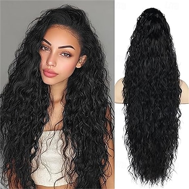 Extension per coda di cavallo, 24 pollici di capelli ricci ondulati neri naturali con clip a forma di artiglio, extension per capelli sintetici dall'aspetto naturale per donne da 24 pollici