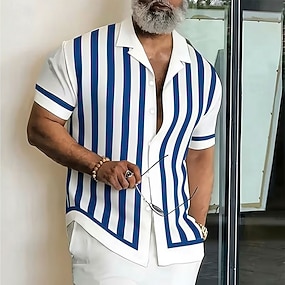 Per uomo Geometrico A righe Camicia Camicia con Bottoni Camicia con collo camp Manica Corta Business Casual Abbigliamento casual alla moda Vacanza Estate Primavera Colletto cubano Stampa 3D Blu Vino
