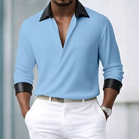 Per uomo Camicia Maglia a coste Camicia casual Bianco Blu marino Grigio Azzurro Manica Lunga Semplice Collo ripiegato Casuale Quotidiano Patchwork Abbigliamento Elegante Moda Moderno Casual