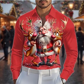 Natale Per uomo Babbo Natale Renna natale divertente Camicia Camicia in raso Camicia elegante Manica Lunga Moda Casual Feste Ferie Primavera Autunno Collo ripiegato Stampa 3D Camicie con bottoni Nero