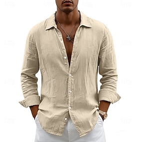 Per uomo Camicia Camicia di lino Camicia Estiva Abbigliamento da spiaggia Camicia con Bottoni Semplice Vacanza Casuale Bianco + rosa Blu navy + grigio Verde+Cachi Blu + blu navy Manica Lunga Collo