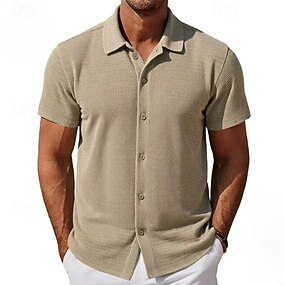 Per uomo Camicia Tessuto Camicia casual Camicia con Bottoni Nero Bianco Kaki Manica Corta Semplice Collo ripiegato Casuale Quotidiano Traforato Abbigliamento Elegante Moda Casual