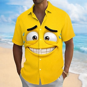 Per uomo Illusione ottica Fantasia "Cartone 3D" Faccia Sorridente Camicia Camicia con Bottoni Manica Corta Divertente All'aperto Ferie Estate Primavera Collo ripiegato Stampa 3D camicie con colletto