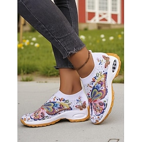 Sneakers slip-on da donna con stampa a farfalla vivace e cuscino d'aria - scarpe da passeggio in maglia traspirante per esercizi leggeri e uscite informali product tag