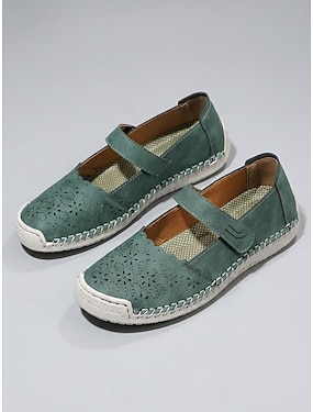 Scarpe basse Mary Jane da donna in vera pelle bianca – calzata ampia, traspiranti, con intagli e dettagli floreali, comode scarpe basse per la vita in campagna, il giardino e l'uso quotidiano.