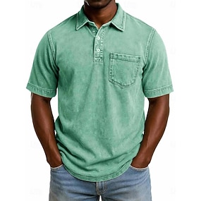 Per uomo Camicia lavata con acido Polo in Cotone Casuale Ferie Bavero Manica Corta Moda Essenziale Semplice Vintage ▾ angosciato Estate Primavera Tutte le stagioni Vestibilità regolare Nero Verde