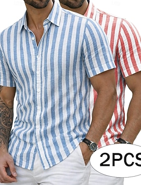Per uomo Camicia Camicia di lino Camicia Estiva Camicia da Spiaggia Camicie a righe Strisce verticali Casuale Vacanza Giallo + blu Rosa + giallo Giallo + verde Blu navy + giallo Manica Corta Collo