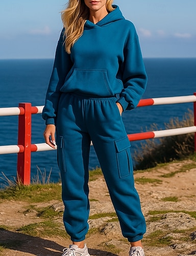 Per donna Tuta da 2 pezzi Felpa con cappuccio Lounge Set di tute da ginnastica Baggy con tasca Blocco di colori Completo Abbigliamento Autunno Nero Blu Escursionismo Lavoro All'aperto Manica Lunga
