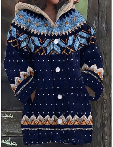 Per donna Felpa Cardigan Vintage Stile Etnico Casual Grafico Geometrico Con Cappuccio Tasca Manica Lunga Top Regolari Maglia All'aperto Quotidiano Weekend Rosso Blu Autunno Inverno