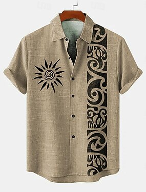 Per uomo Camicia camicia di lino Camicia hawaiana camicie retrò Camicia d'epoca Camicia etnica Giornaliero Verde Kaki Beige Manica corta Collo ripiegabile Estate Primavera Abbigliamento