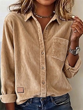 Per donna Camicia Top Eleganti Tinta unica Semplice Vintage Carino Elegante Manica Lunga Colletto a Camicia Top Regolari Lavoro Quotidiano Uscire Tasca Bottoni Cammello Autunno Inverno