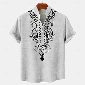 Per uomo camicia di lino Camicia Henley camicie retrò Camicia d'epoca Camicia etnica Etnico Giornaliero Per eventi Blu Beige Grigio Manica corta Alla coreana Estate Primavera Abbigliamento Stampa