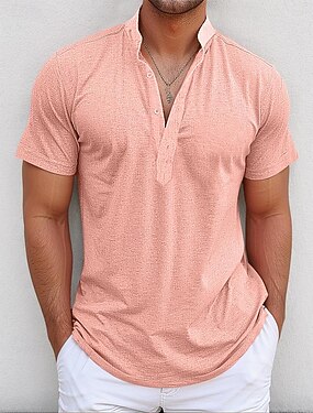 Per uomo Camicia camicia di lino Camicia con colletto a fascia Camicia popover Camicia estiva Camicia da spiaggia Liscio Da mare Curise Nero Bianco Rosa Verde Manica corta Henley Estate Abbigliamento