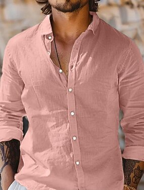 Per uomo Camicia camicia di lino Camicia estiva Abbigliamento mare Camicia con bottoni Tinta unica Da mare Curise Nero Bianco Rosa Blu Manica lunga Estate Abbigliamento