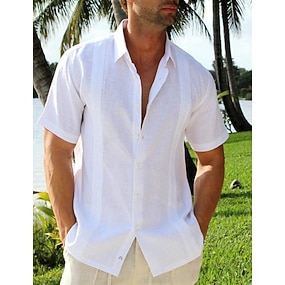 Per uomo Camicia Camicia di lino Camicia in cotone e lino Camicia bianca di cotone Camicia Guayabera Camicia Estiva Semplice Vacanza Casuale Nero Bianco Blu Verde Manica Corta Bavero Estate