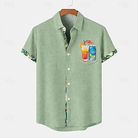 Per uomo Camicia Camicia di lino Camicia Estiva Camicia da Spiaggia Camicia con Bottoni Piante Ferie Abbigliamento quotidiano Blu Rosa Verde Cachi Manica Corta Collo ripiegato Estate Abbigliamento