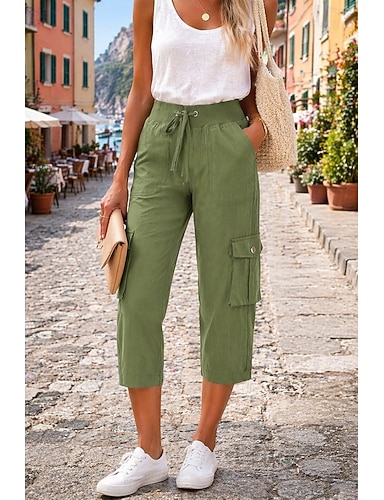 Per donna Cotone Pantaloni capri Pantaloni Cargo Pantaloni Eleganti Vacanza Streetwear Essenziale Lunghezza al polpaccio Naturale Semplice Tasca Design con Coulisse Elastica Comodo Comodità All'aperto