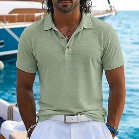 polo da uomo in lino casual vacanza classica manica corta vacanza moda tinta unita testurizzata bottoni estate primavera vestibilità regolare blu lago nero bianco verde chiaro rosa viola