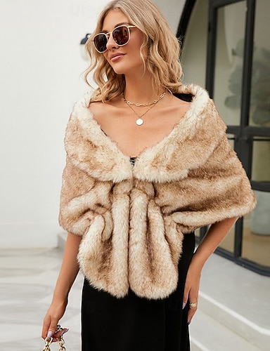 scialle in pelliccia sintetica da donna, scialli e stole di pelliccia di lusso per abiti da sera, scialle in pelliccia sintetica da sposa per sposa e damigella d'onore