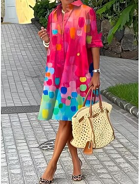 Per donna Abito Midi Vestito T-Shirt Vacanza Compleanno Casual Spiaggia Uscire Vestibilità comoda Grafico Astratto Manica Lunga Bavero Blu Rosa scuro Verde Estate Primavera