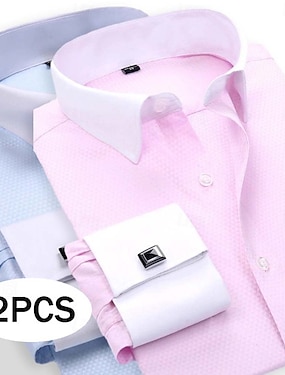 Per uomo Camicia Camicia elegante Camicia con polsini alla francese Semplice Matrimonio Affari Rosa+Viola Blu+Blu chiaro Giallo + blu Giallo + rosa Manica Lunga Colletto Tutte le stagioni