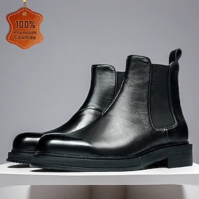stivali chelsea da uomo in vera pelle nera con finitura lucida: eleganti stivali slip-on per occasioni casual da lavoro e serali