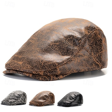 Per uomo Coppola Cappello Ascot Cappello da Giornalista Nero Caffè Pelle PU Moda Casual Streetwear Quotidiano Semplice Regolabile Protezione solare Traspirante
