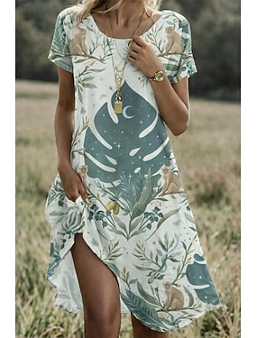 Per donna Abito Midi Vestito T-Shirt Abito a trapezio Abito Estivo Vacanza Casual Quotidiano Spiaggia Ferie Vestibilità regolare Floreale Grafico Animale Manica Corta Scollo a V Blu Rosa Viola Blu