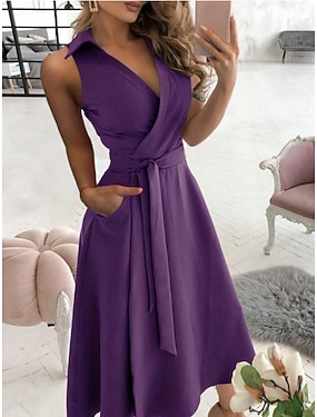 Per donna Abito Midi Abito a trapezio Abito Estivo Casual Quotidiano Vestibilità regolare Semplice Senza Maniche Scollo a V Blu Nero Viola Verde Estate Primavera