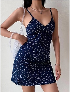 Per donna Mini Abito Tubino Abito Sottoveste Vacanza Casual All'aperto Uscire Vestibilità aderente Floreale Senza Maniche Spalline sottili Blu chiaro Bianco Giallo Blu marino Estate Primavera