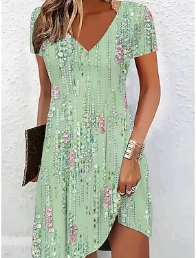 Per donna Mini Abito Vestito Estivo Vestito T-Shirt Abito a trapezio Vacanza Casual Boho Spiaggia Uscire Vestibilità regolare Floreale Grafico Manica Corta Scollo a V Verde Estate Primavera