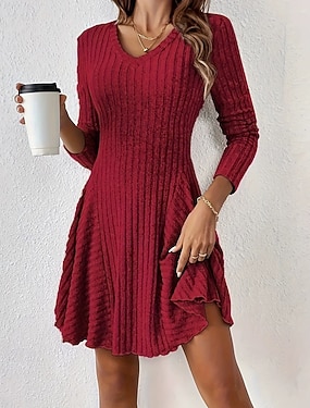 Per donna Mini Abito Vestito Casual Moda Classico Moderno All'aperto Vacanza Ferie Vestibilità regolare Semplice Manica Lunga Scollo a V Nero Rosa Rosso Verde Estate