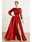Linea ad A Abito da Sera Elegante Abito formale Formale Matrimonio Lunghezza al pavimento Manica Lunga Monospalla Tasca Raso Elasticizzato con Glitter 2025