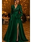 Abito da Natale A-Line Abito da Sera Elegante Ospite di Nozze Abito Formale Black Tie Cocktail Party Lungo Maniche Lunghe Scollatura a V in Raso da far colpo