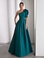 Linea ad A Abito da Sera Elegante Abito formale Formale Matrimonio Lunghezza al pavimento Manica Corta Senza Spalle Mantelle Raso con Tasca 2025