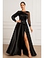 Linea ad A Abito da Sera Elegante Abito formale Formale Matrimonio Lunghezza al pavimento Manica Lunga Scollo Illusione Tasca Raso con Arricciato 2025