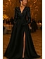 Linea ad A Abito da Sera Elegante Abito formale Formale Matrimonio Lunghezza al pavimento Manica Lunga Scollo a V Tasca Raso con Glitter Pieghe Tasca 2025