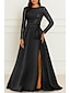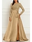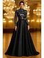 Linea ad A Abito da Sera Elegante Abito formale Formale Matrimonio Lunghezza al pavimento Manica Lunga Girocollo Invitato a matrimonio autunnale Raso con Glitter Ricamo 2025