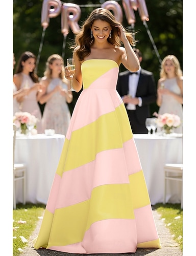 Linea ad A Lunghezza al pavimento Abito da invitata a nozze Abito Formale Abito da sera Abiti da Ballo Elegante Festa Senza Maniche Senza Spalline Balli di fine anno Festa in giardino Raso con Blocco