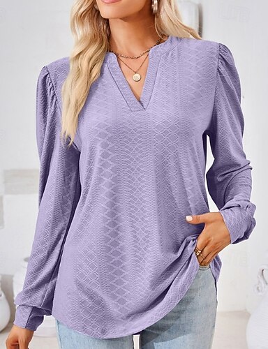 Per donna Camicia Camicia traforata Top traforato Blusa Semplice Elegante Classico Moderno Manica Lunga Scollo a V Top Regolari Casuale Quotidiano Spiaggia Rosa cipria Nero Rosa Vino Blu marino