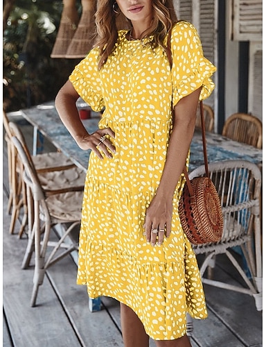 Per donna Abito al ginocchio Abito Boho Vestito Casual Abito Floreale Elegante Moda Moderno All'aperto Vacanza Uscire Vestibilità comoda Grafico Manica Corta Girocollo Nero Bianco Giallo Verde